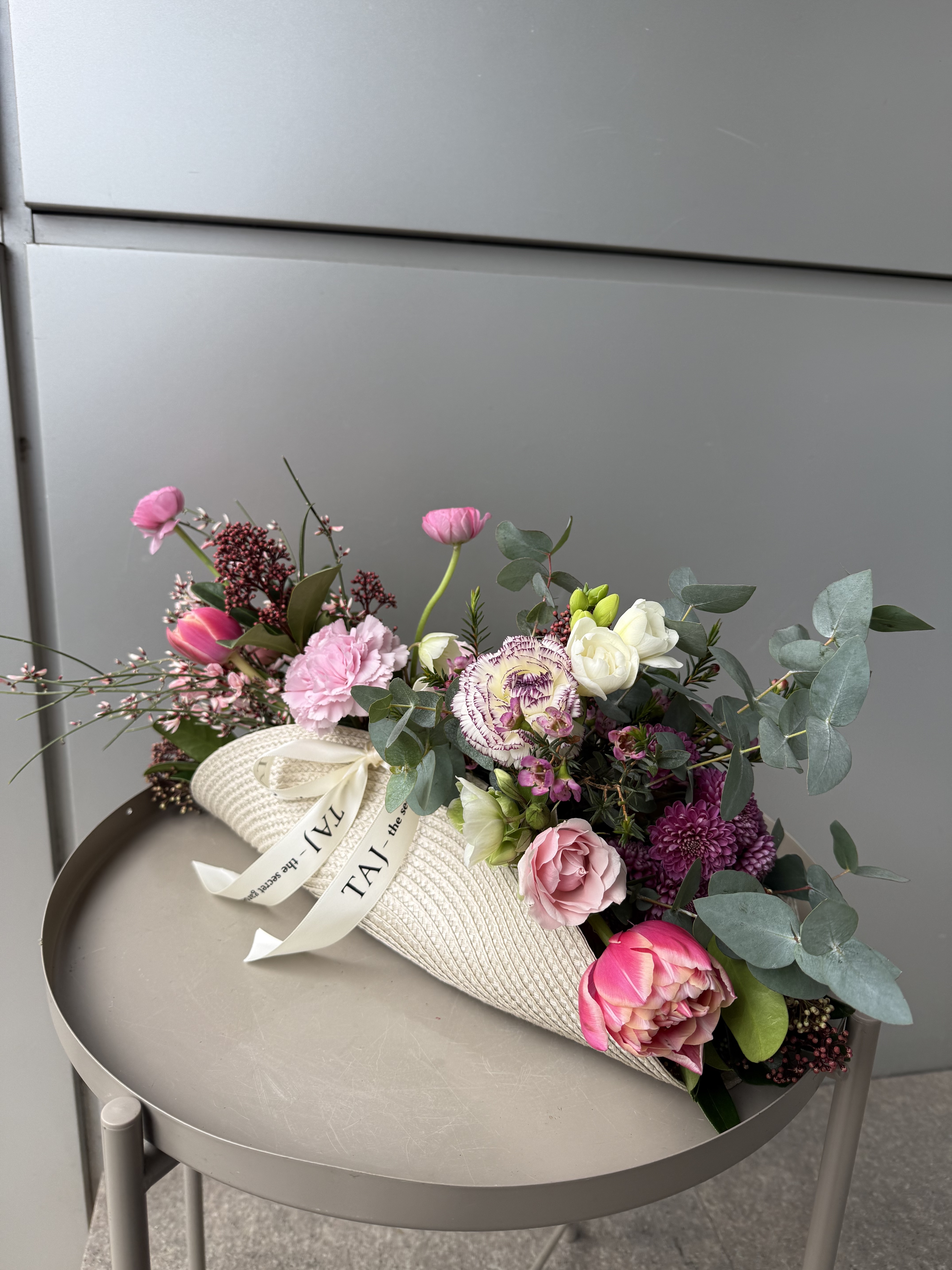 In functie de sezon, aranjamentul va fi adaptat cu florile care sunt disponibile in aceasta perioada din an. Prin plasarea comenzii, primim acordul dvs de a inlocui florile care nu sunt in sezon sau pe stoc cu flori disponibile, incat sa pastram cromatica, bugetul si calitatea aranjamentului.
